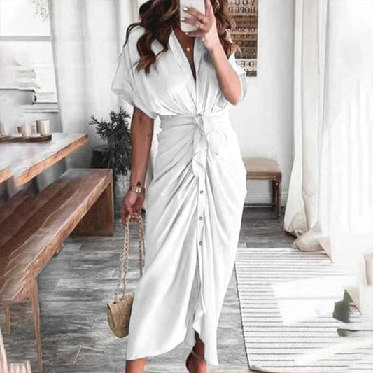 Karima - Abito Lungo con Maniche Corte e Colletto Rovesciato