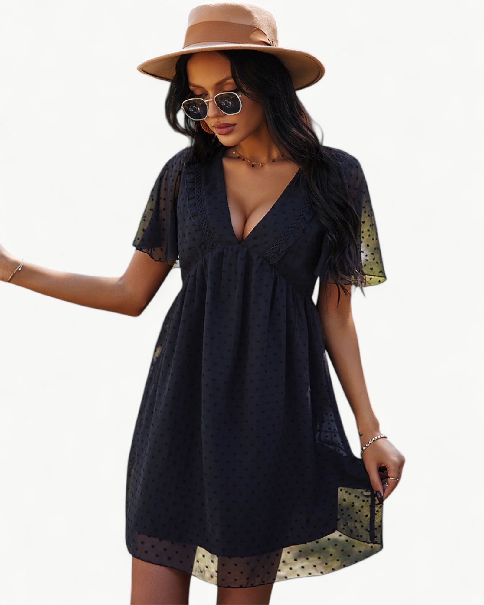 Déjate conquistar por el vestido ALEJANDRA, ligero y encantador, confeccionado en un tejido aireado con una delicada textura fruncida que aporta un toque artesanal. Su profundo escote en V, adornado con encaje, realza el pecho con feminidad, mientras el corte suelto y las mangas fluidas aseguran libertad de movimiento y máxima comodidad. Ideal para los días cálidos en los que quieres verte y sentirte increíble.