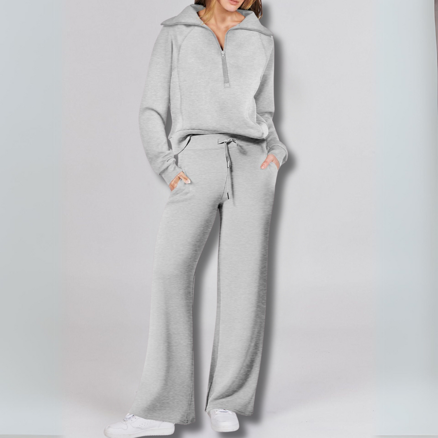 El conjunto de dos piezas EVA combina sin esfuerzo elegancia y comodidad. Con su corte holgado, ofrece un look elegante y relajado, perfecto para cualquier ocasión, durante todo el año. Este conjunto es increíblemente versátil y se puede combinar de innumerables maneras; cada pieza se combina fácilmente con tu guardarropa.
