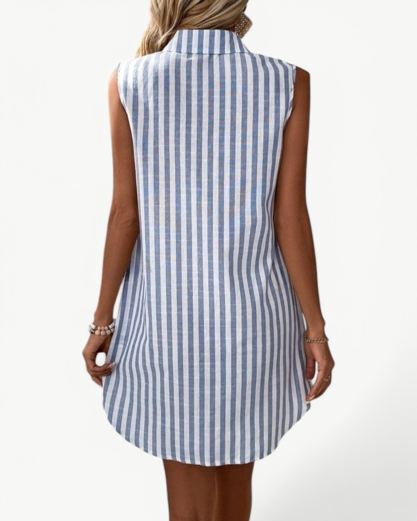 MARCELINE – Randig skjortklänning utan ärm | Klassisk och somrig