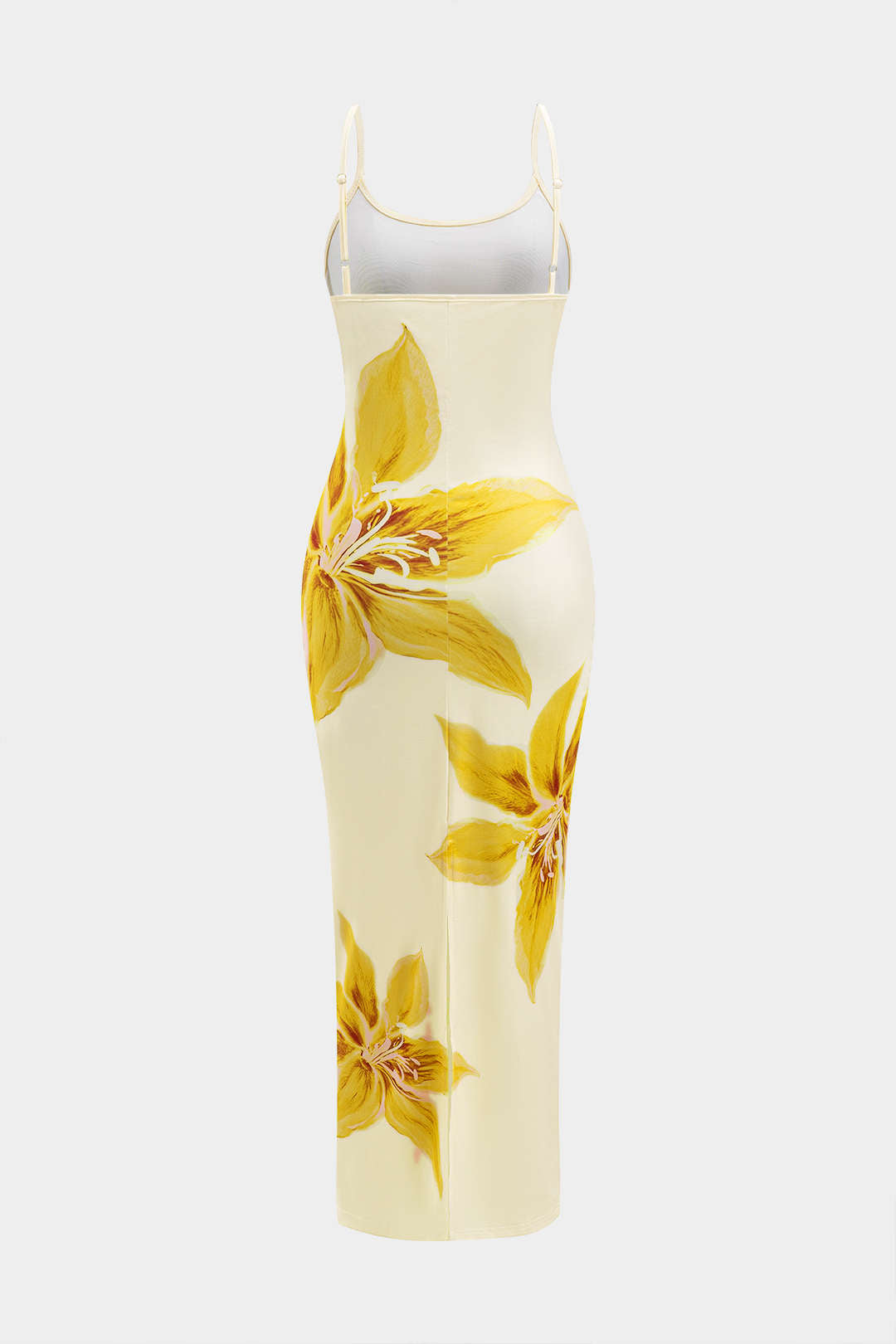 Vestido largo CLAUDIA sin mangas con estampado floral.
