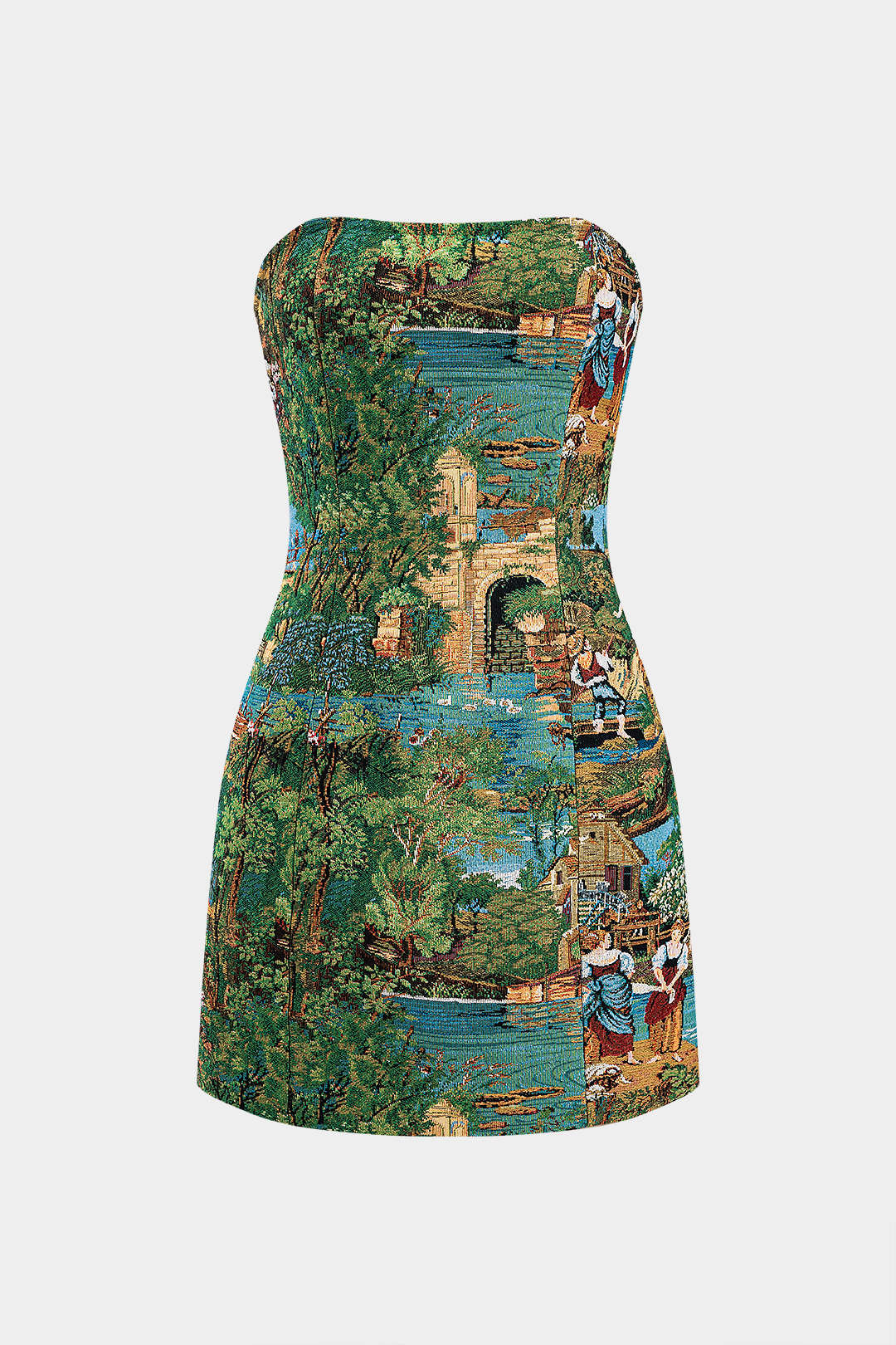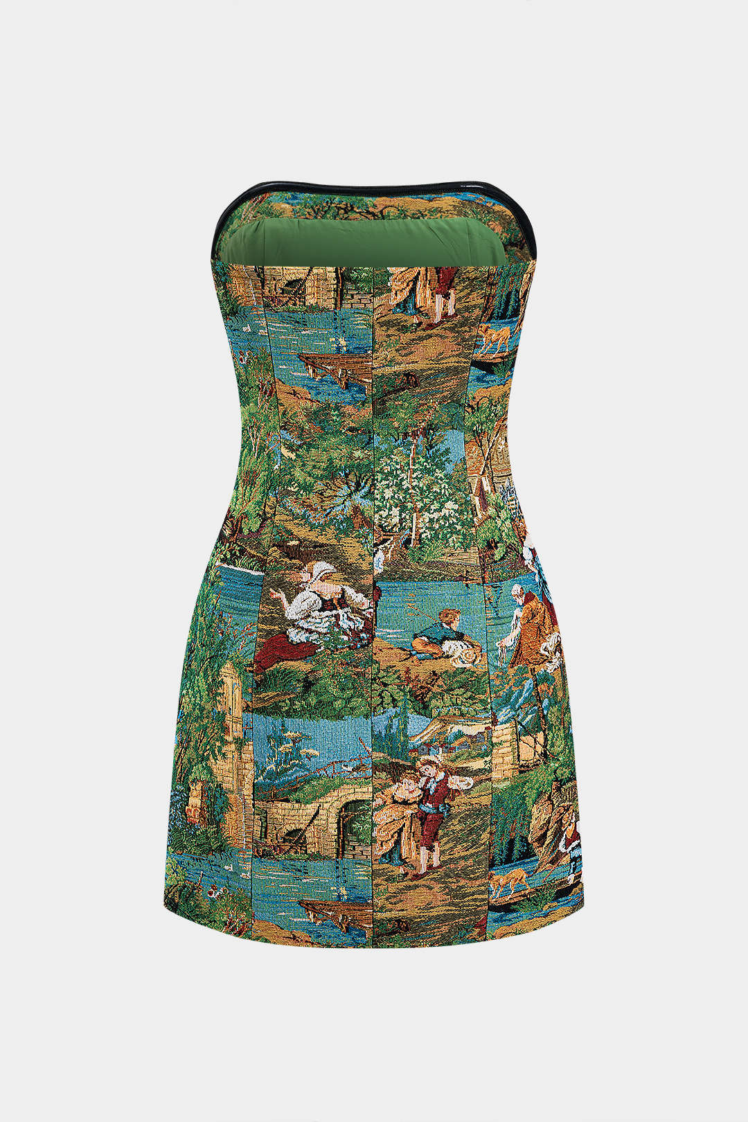 Mini vestido LAIA, sin mangas de jacquard sin tirantes.