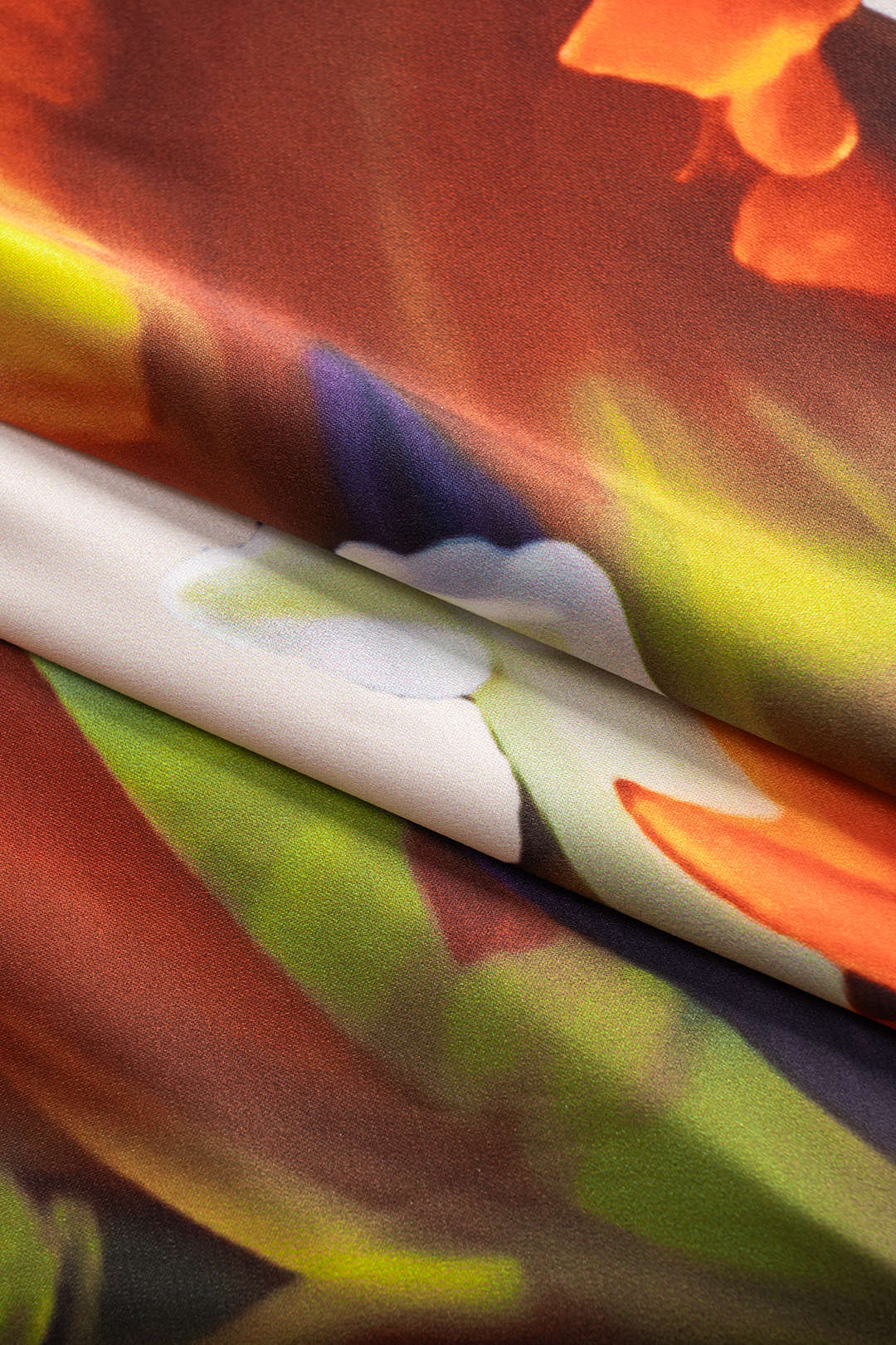 Mini vestido sin mangas CANDELA, con cuello halter y espalda descubierta con estampado floral de satén.