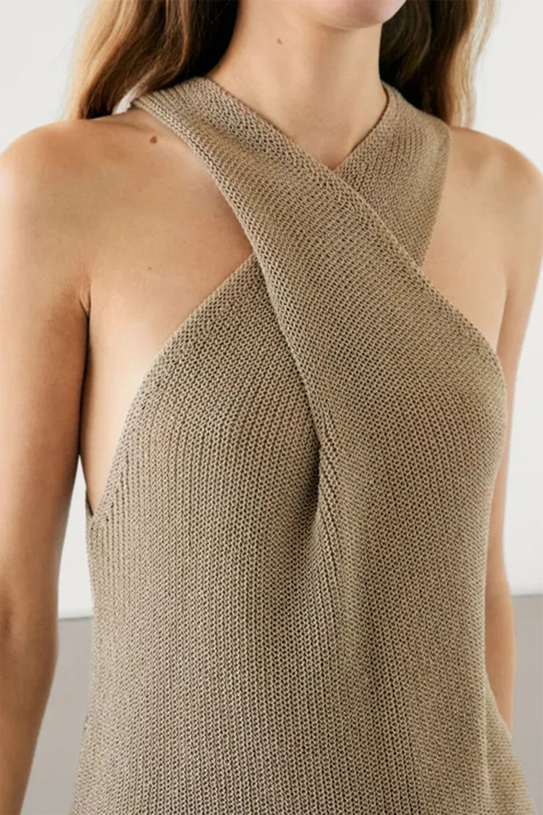 IRENE, camiseta sin mangas con detalle cruzado de punto.