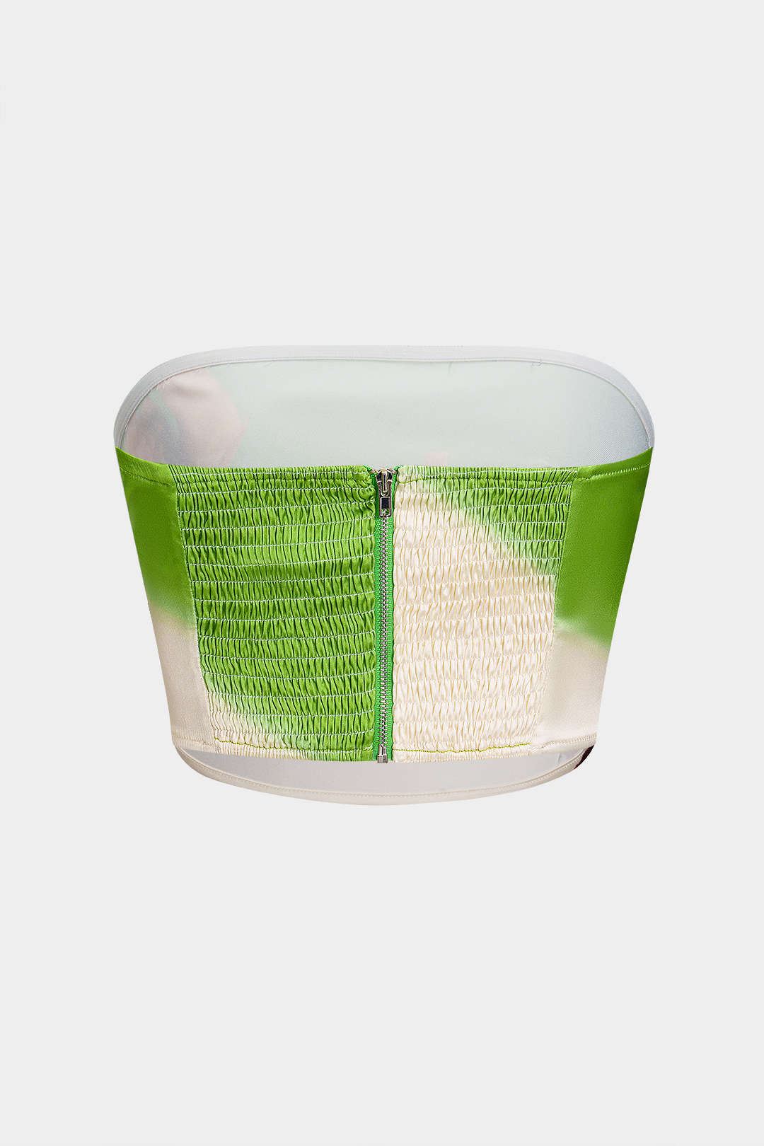 LINA, top de tubo con cremallera fruncida con patrón de contraste floral de satén.