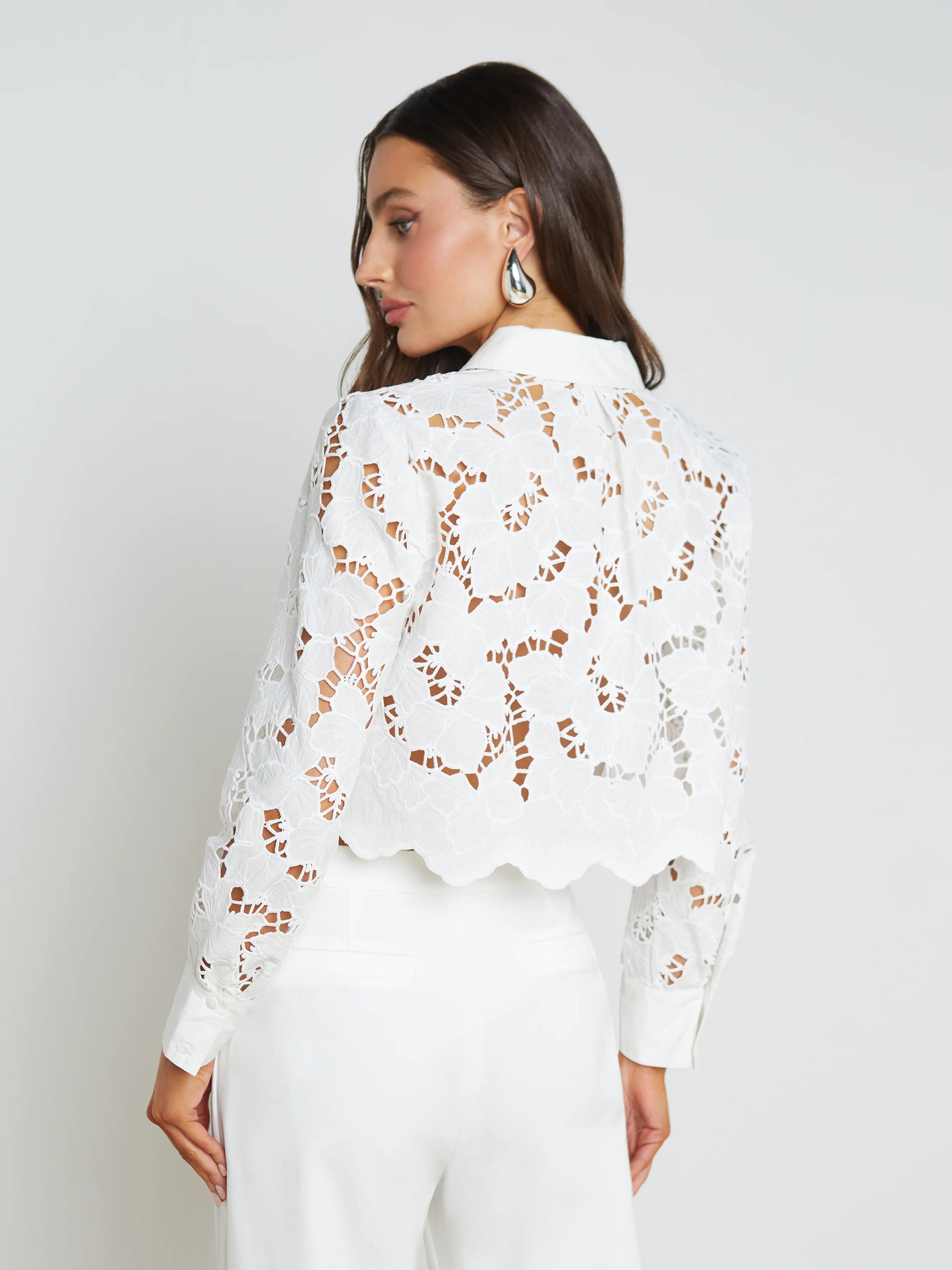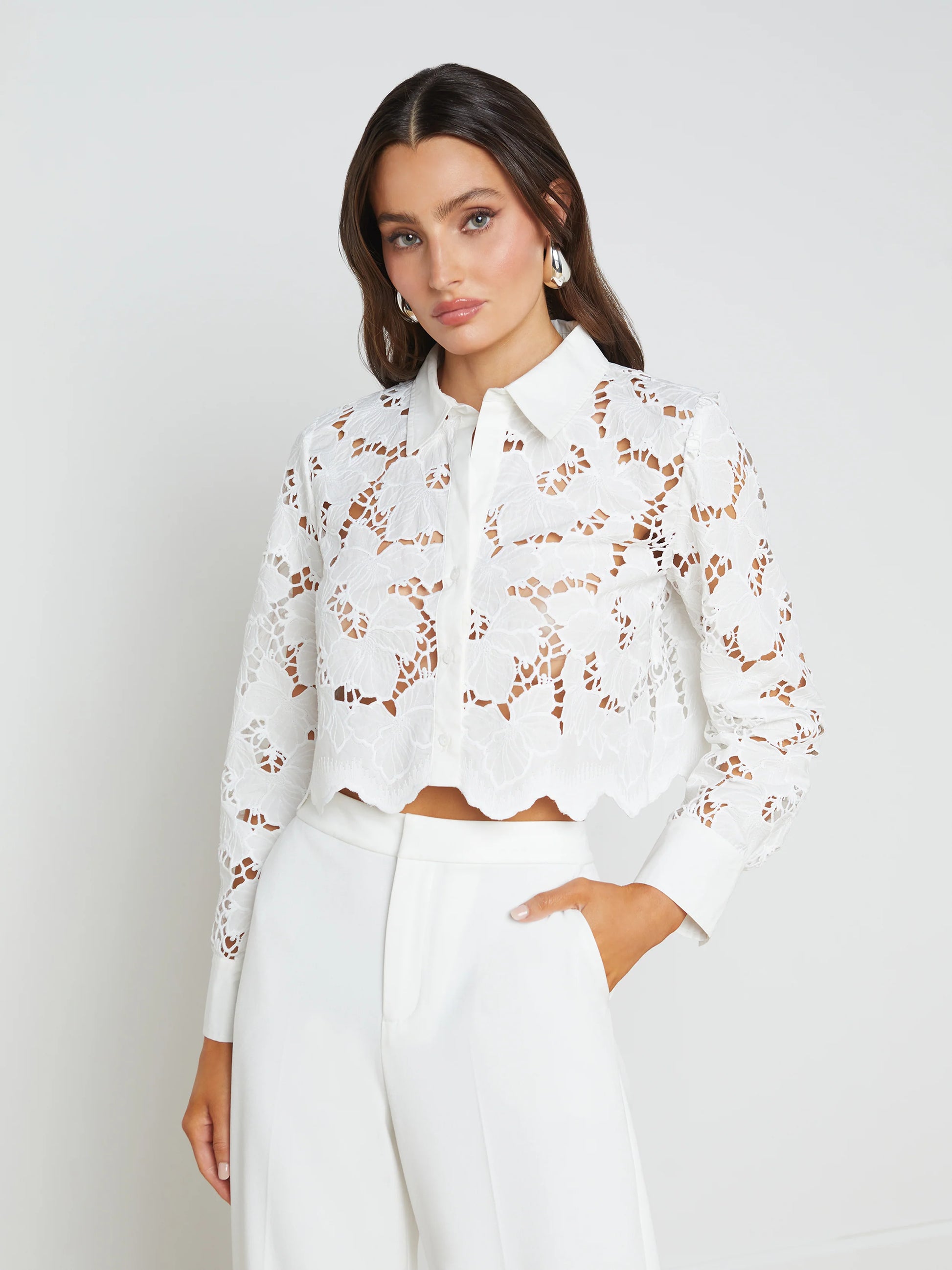 Nuestra versión moderna de una blusa de encaje, NELLY ofrece detalles camiseros clásicos en un moderno corte corto.