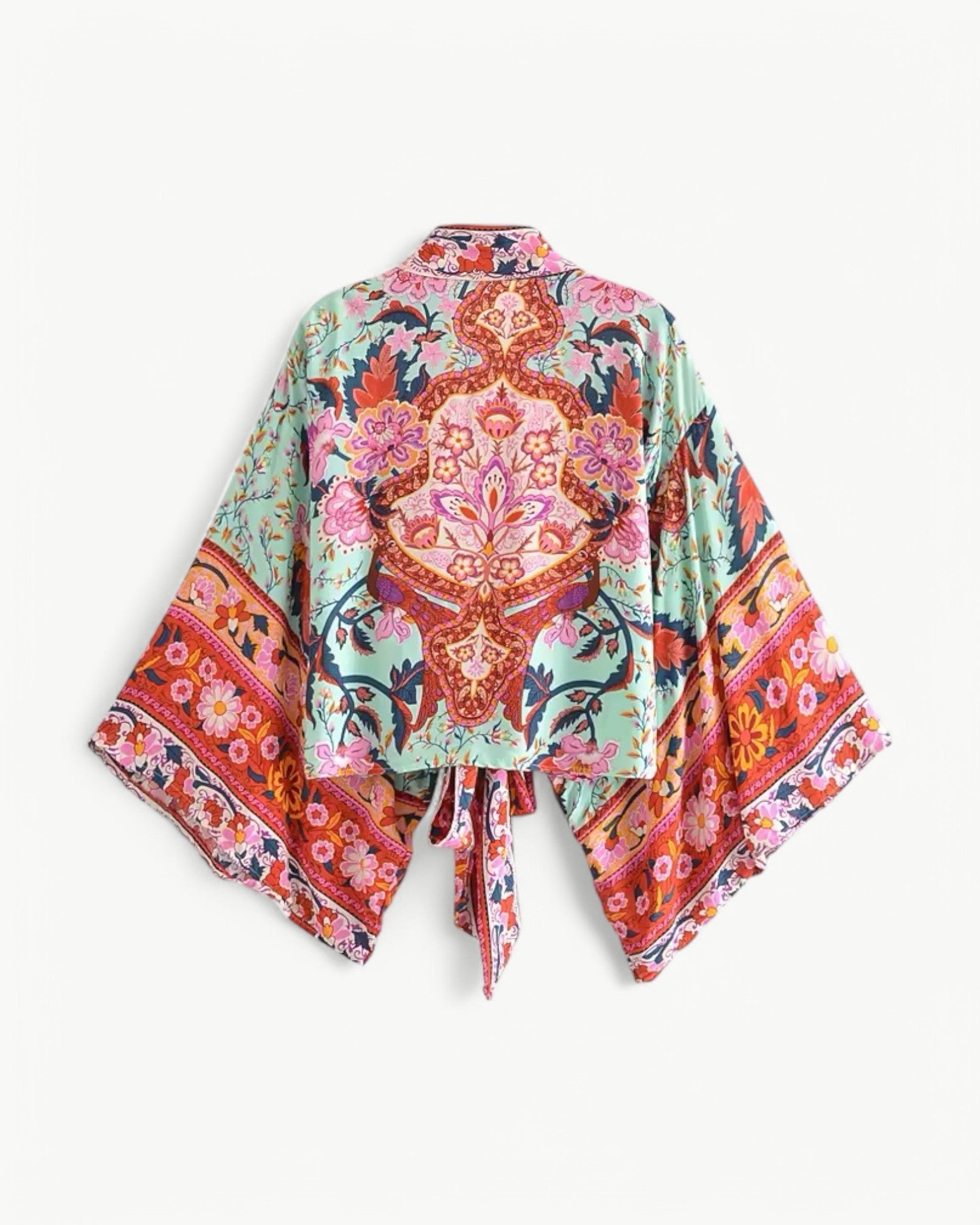 ODÉLIA – Bohemisk kimono-blus med knytfront & V-ringning